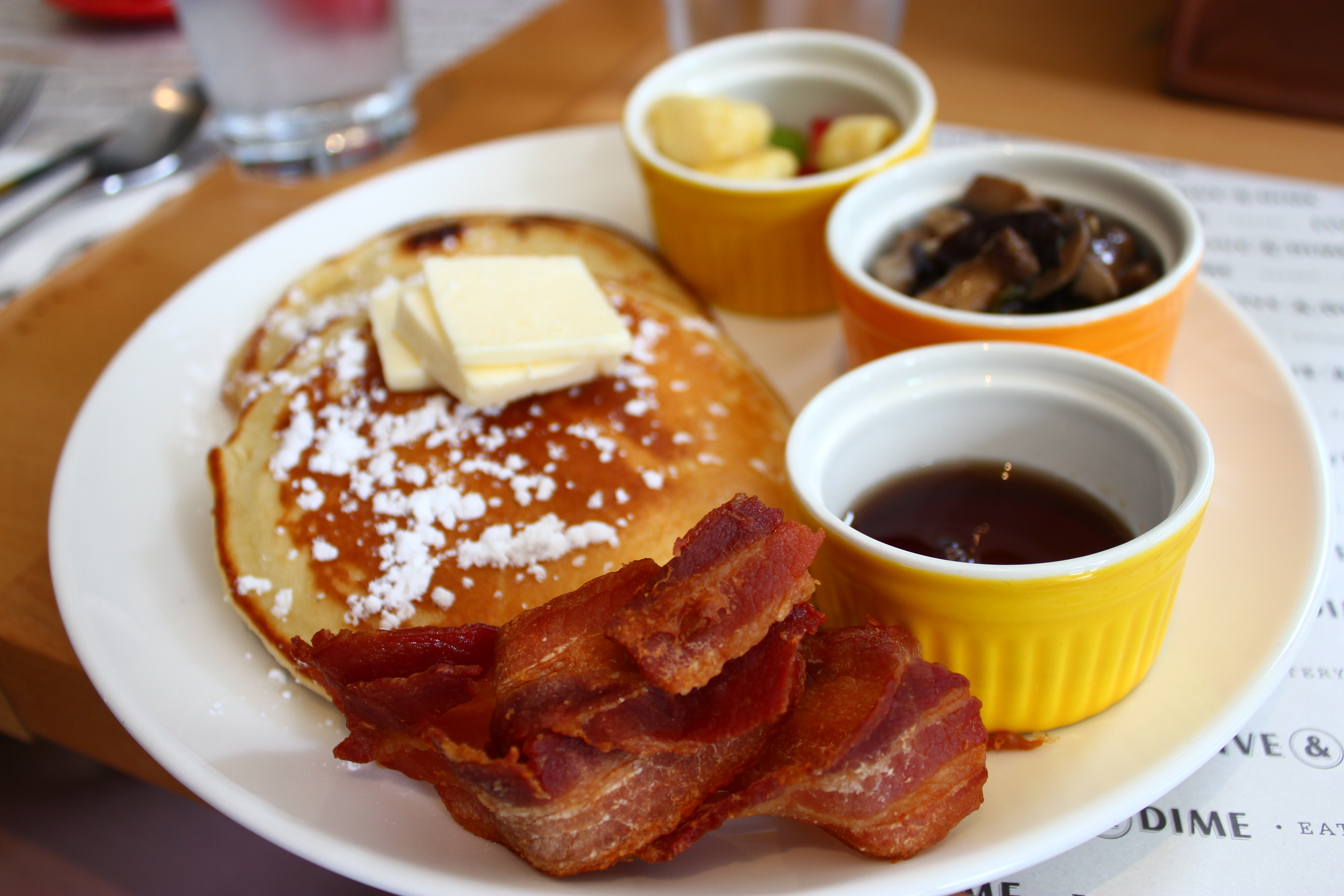 Pancakes lovers should not miss out ordering the Buttermilk Pancakes which comes with Bacon or Chicken sausage and sauteed mushrooms. The Pancake is soft and flavourful, pretty much value for money at $15 as well.