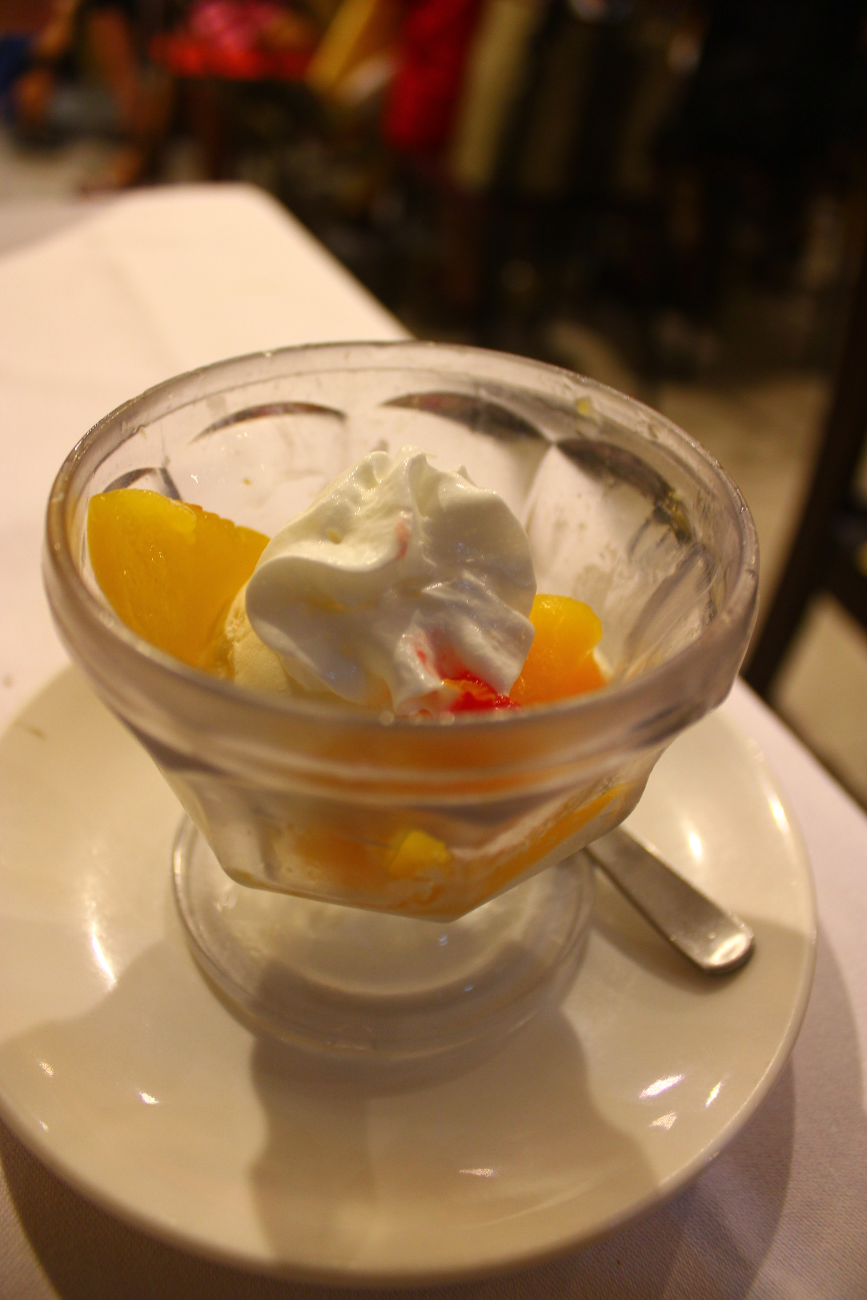 Dessert is no fanciful Häagen-Dazs ice-cream but a decent scoop of Vanilla with some fruits and plenty of whip cream.