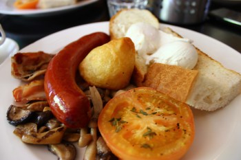 For my mains, I decided to order the house special: Spruce Big Brekkie ($18) as I reckon that it has the perfect breakfast combination – Eggs (Scrambled, Poached or Sunny Side up), mushrooms, german sausage, potato, bacon and tomatoes.