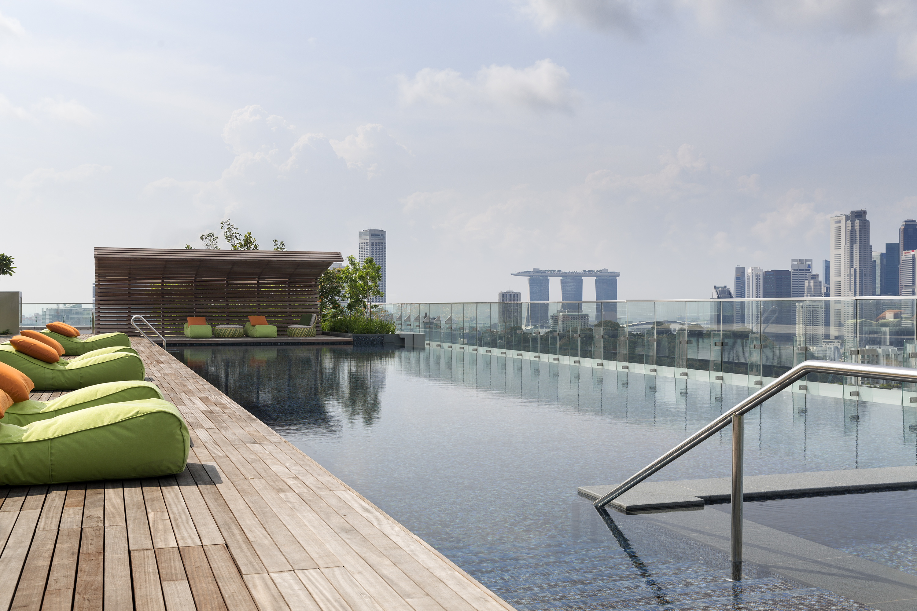 This 500-odd rooms hotel is located right above the Somerset MRT Station, at the top floors of the latest shopping mall in downtown Singapore. If the location still doesn’t impress you, then probably the following list of perks will – free Wifi across the hotel, free mobile charging stations throughout the hotel, free coffee to perk yourself up, informal check-in counters, tips from the hotel’s own blog on the where-tos in Singapore, and how could anyone miss this out, the rooftop pool with a view of Singapore’s skyline. According to a hotel staff, this rooftop pool can very well rival the other pool of the “you-know-which-hotel”! (hint: the rival hotel is in the picture below!)
