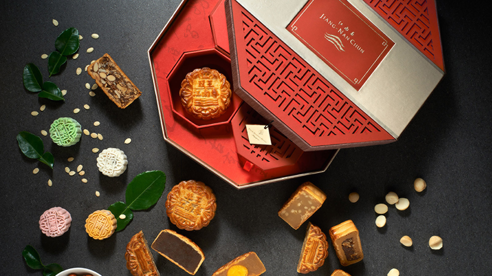 Apart from the usual favourite baked mooncakes such as the Baked Mooncake with Single/Double Yolk and White Lotus Paste, there is a reduced sugar version with the Baked Mooncake with Macadamia Nuts and Low Sugar White Lotus Paste. For something more novel, Mandarin Orchard Singapore has launched the Baked Mooncake with Mixed Nuts and Jamón ibérico and the Baked Mooncake with Azuki Red Bean Paste and Pine Nuts.