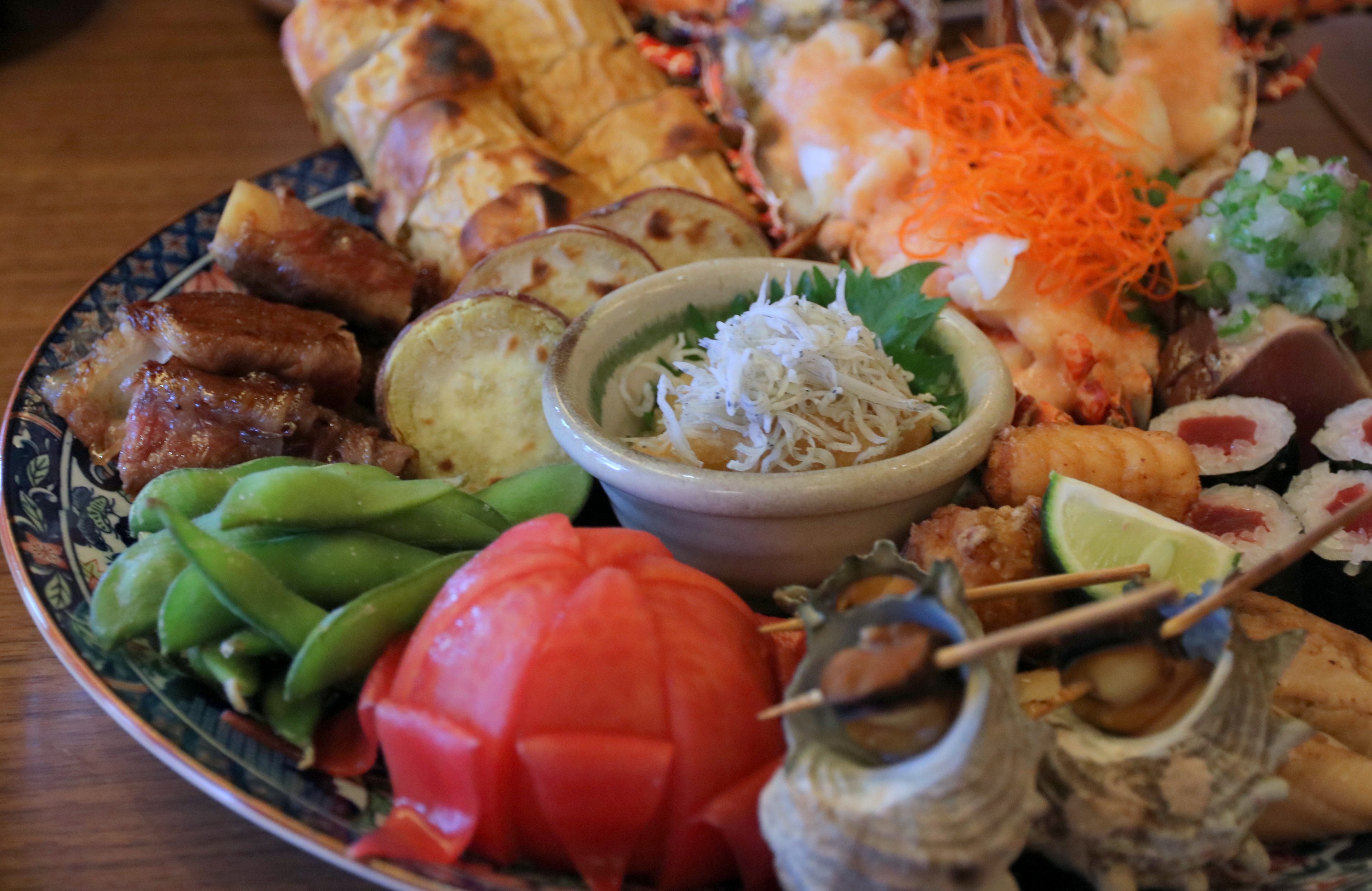 The Highlights The main highlight for me is the Sawachi, a beautiful and colourful display of seafood, meat and vegetables, which is one of the traditional cuisines of the Kochi Prefecture. It was hard not to love the wide array of dishes on this plate, which includes Grilled Lobster with Cod Roe Sauce, Deep-fried Puffer Fish, Mini Turban Shell, Bamboo Shoot, Tomato, Grated Radish with Baby Sardine, Tuna Roll Sushi, Sea Eel Sushi, Edamame, Fish Cake, Baked Sweet Potato and Seared Bonito. My favourite is the Grilled Lobster, which was enriched well with the richness of the Cod Roe Sauce.