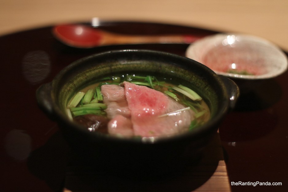 The Shiizakana of the Kaiseki meal often features a more substantial dish, and I couldn’t be more excited when I learnt that it was going to be a hotpot. The Kagoshima Wagyu Nabe was easily one of my favourite dishes that night especially since I’ve always have a penchant for Japanese Wagyu beef. The slices of well-marbled Wagyu beef were simply simmered in a hot bowl, and within seconds the beef was ready to be consumed. The whole texture literally melted in the mouth, and that clear soup was the perfect happy ending.