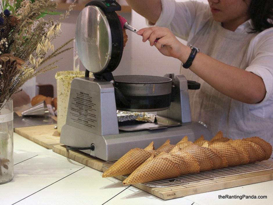 The Food Well, it’s gelato. And upon entering the shop, you will be pleasantly surprised by the aroma from the thyme-wafers which are freshly baked in store every day. And if you are in luck, you do enter the shop while the baking is ongoing – you might just want to bite into the thyme-wafers without any scoop of gelato to go with it!