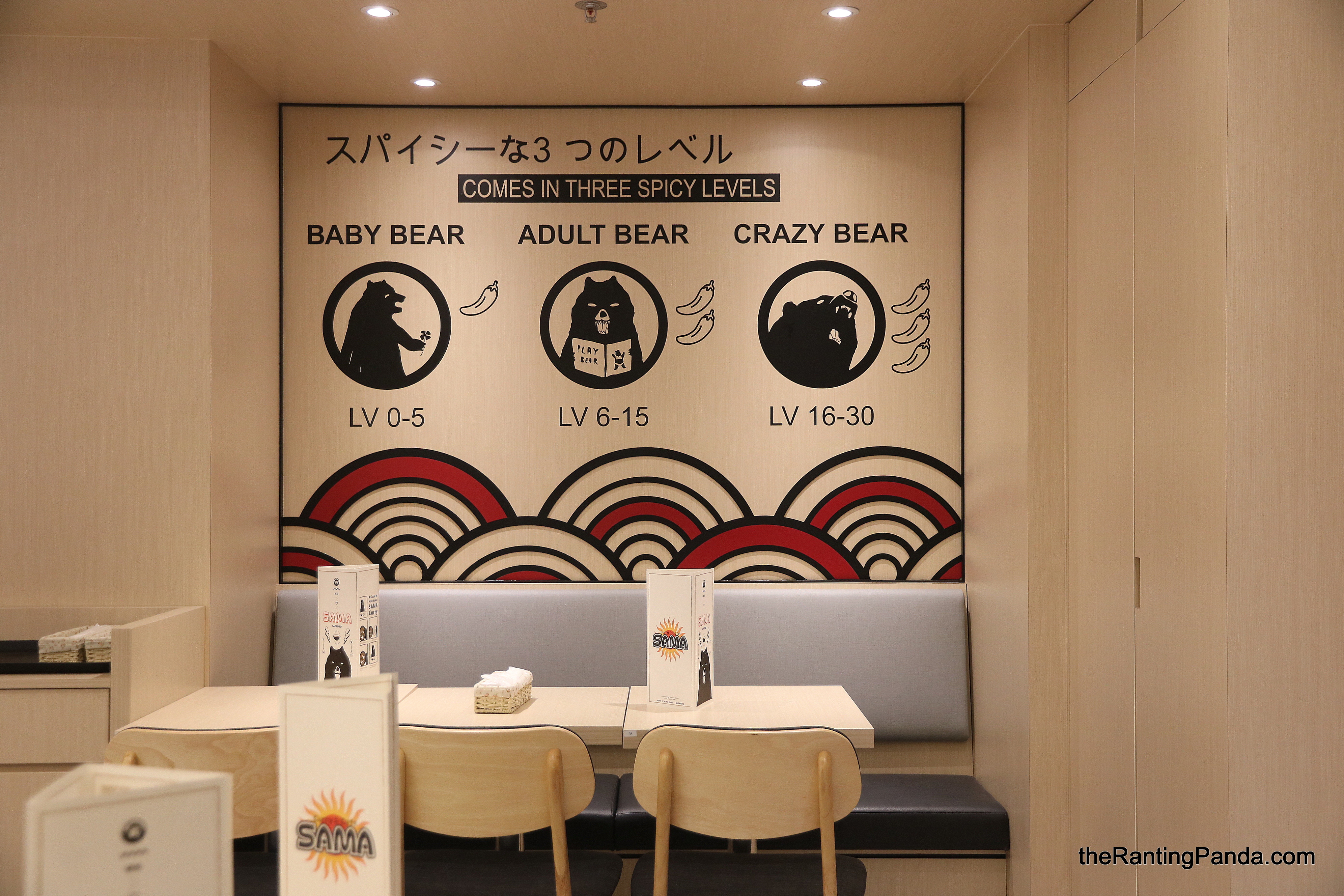 There are three levels of spiciness from a scale of 0 to 30, split into Baby Bear, Adult Bear and Crazy Bear.