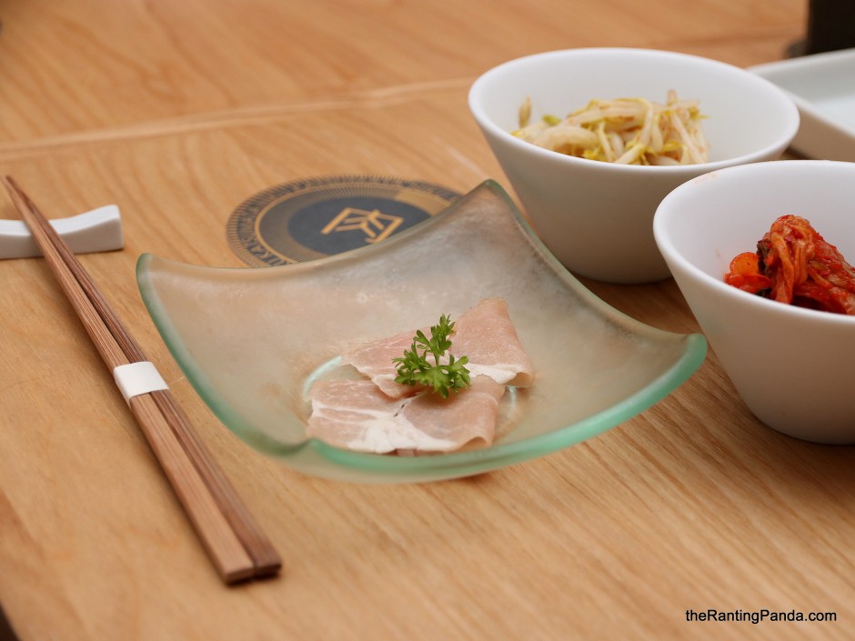 One of the main highlights we had which was introduced recently at Niku Katsumata is the A4 Wagyu Beef Set (S$38), which comprises five elements. We started off first with the Japanese Pork Prosciutto, followed by the Homemade Kimchi with Seasoned Sprout and Chinese Cabbage Salad Topped with Umami Seaweed.