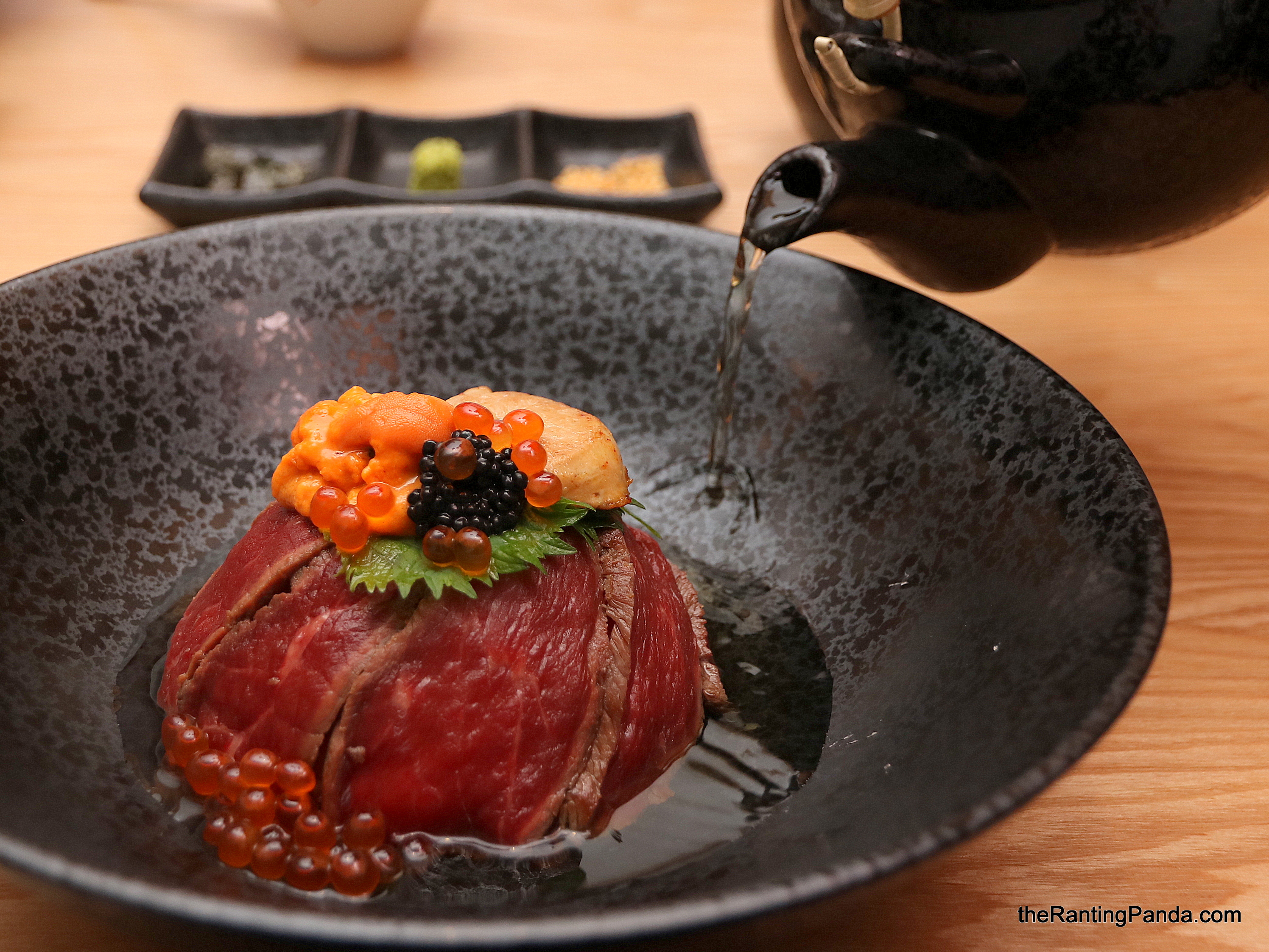 The Food Wagyu Beef, Donburi and sushi are what you can expect here. We started with the Chef’s Special Appetiser (S$19), which features a trio of assorted A4 Wagyu Beef rolls such as Sea Urchin with A4 Wagyu Beef Sashimi Brushed with Shoyu; Marinated Ikura with Wagyu Beef Sashimi; and Foie Gras & Caviar with Wagyu Beef Sashimi Drizzled with Truffle Oil. The presentation and flavours are delicate for all three flavours, with my favourites being a close tie between the Sea Urchin and Foie Gras.