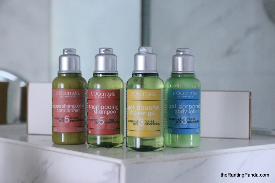 The shower room comes with both bathtub and standing showers, and most importantly, comes stock with L’Occitane en Provence toiletries.