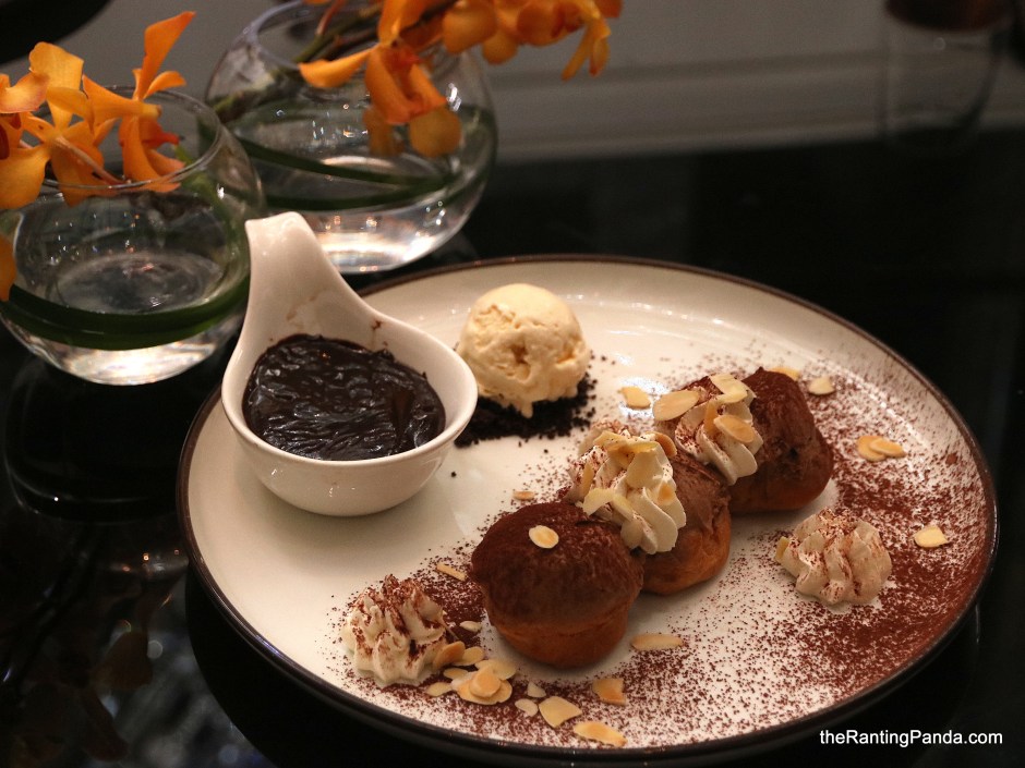 For desserts, we tried the Profiteroles (S$13), served with a warm sauce of 55% Valrhona Equatoriale Noire and a scoop of double Tahitian vanilla ice cream. I’m not a fan of profiteroles, but I enjoyed the rich vanilla ice cream.