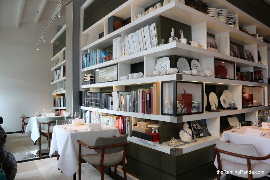 The restaurant is split into three levels – level one is mainly for big dining groups though I find that the lighting is fairly dim; level two is the traditional French fine dining setting where it is more formal; while level three is aptly coined the library where there is nice natural light, plenty of cook books to peruse and also where you get a sneak peek of Chef André’s attic work space.