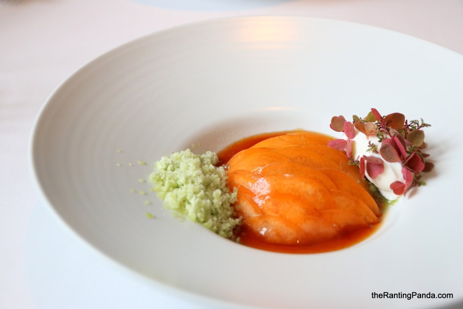 The Fresh and Cured Apricot with Wood Sorrel Fromage Blanc and Wheatgrass Granite is not my favourite combination to say the least.