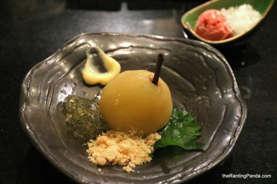 For desserts, I had the Smooth Pear Surinagashi (S$20) with Fresh Berries, Raspberries Sorbet along with Sake Yuzu Consommme. This is a relatively light dessert to conclude the meal. The best bits for me here is the Sake Yuzu Consommme, refreshing and icy at the same time.