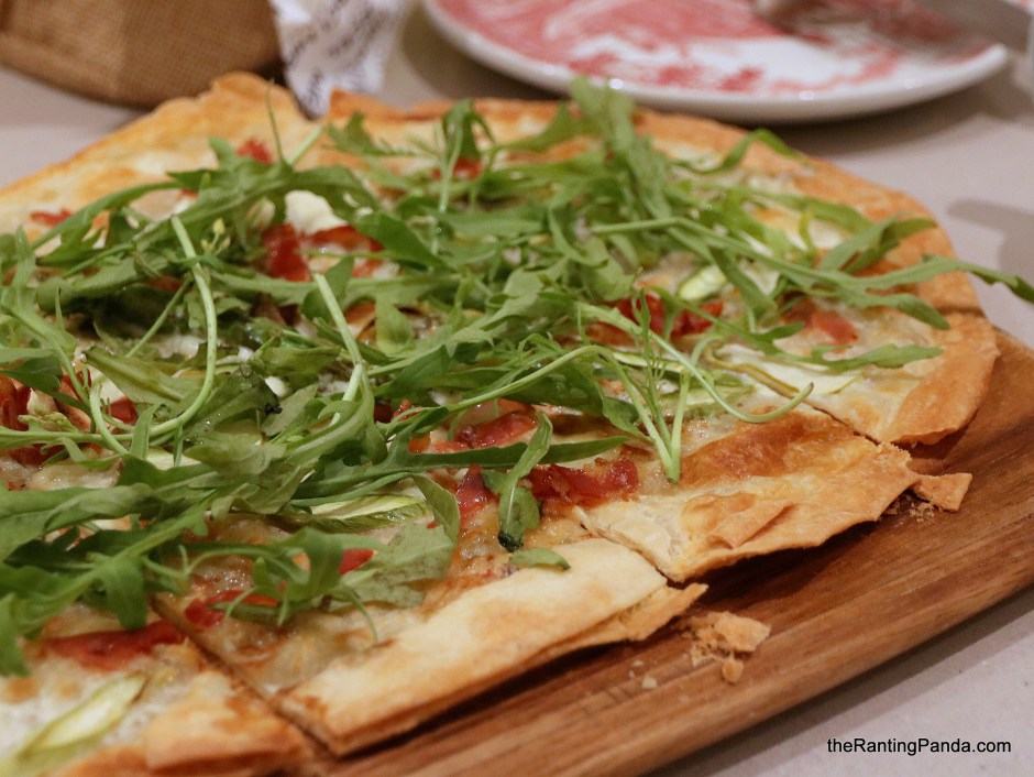 The Tarte Flambee is a thin-crust pizza with asparagus, apple, bacon and blue cheese; yes, blue cheese. Pizza has a perfect crisp texture, with the blue cheese not overpowering – which is a good thing for me.