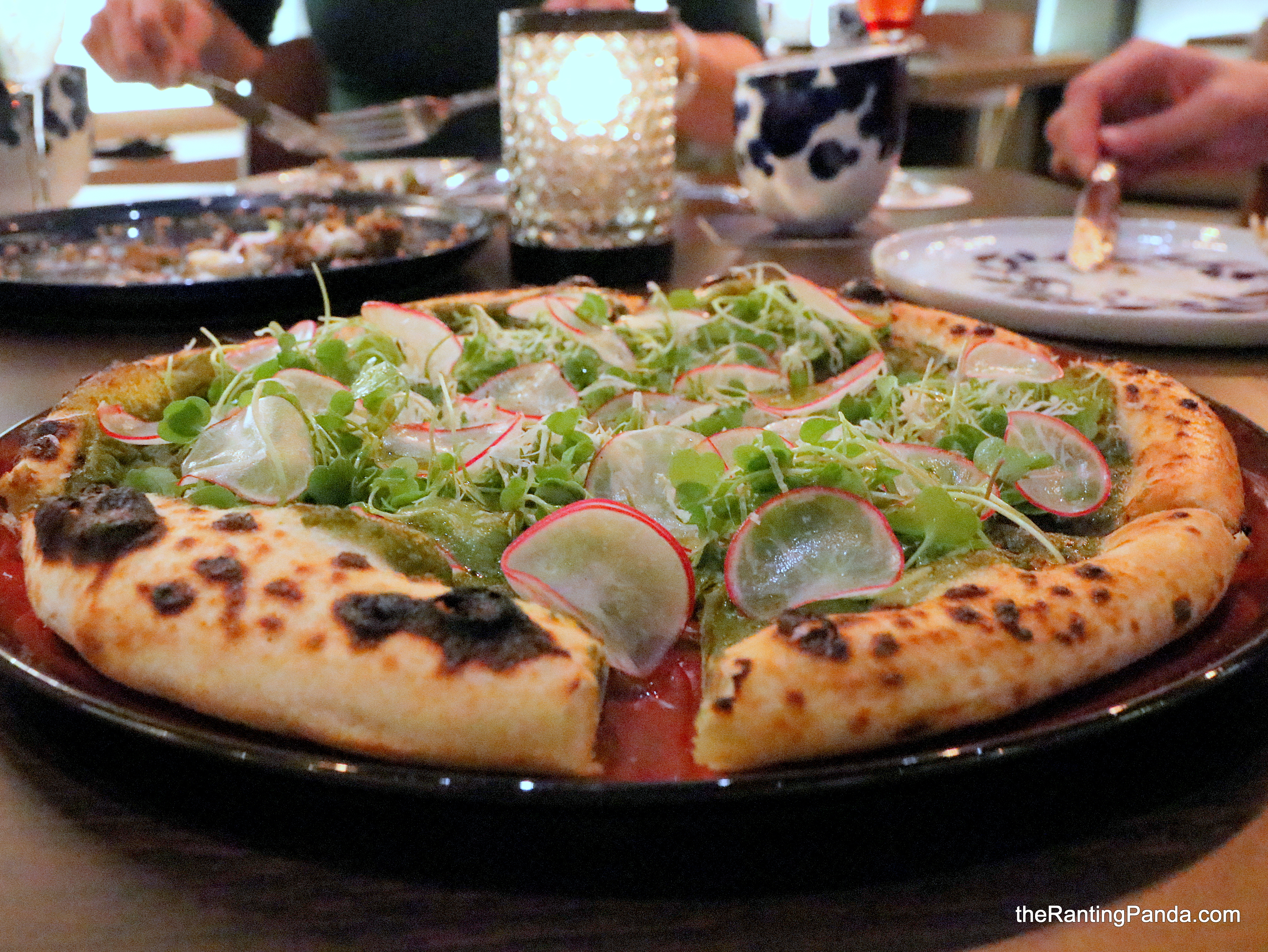There are quite a number of pizza options though the one which easily stood out for all of us is the Bone Marrow, Wild Garlic Pesto and Anchovy Salsa Verde (S$29). We didn’t spit actually bone marrow on the pizza, hence we concluded that the bone marrow oil and flavour is already infused in the crust. Sinfully oily, this was nevertheless very satisfying. I enjoyed the generous spread of pesto on the crust which is a good attempt to balance the overall flavours. The pizza crust is neither too thick nor thin. I was satisfied.