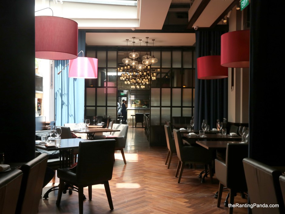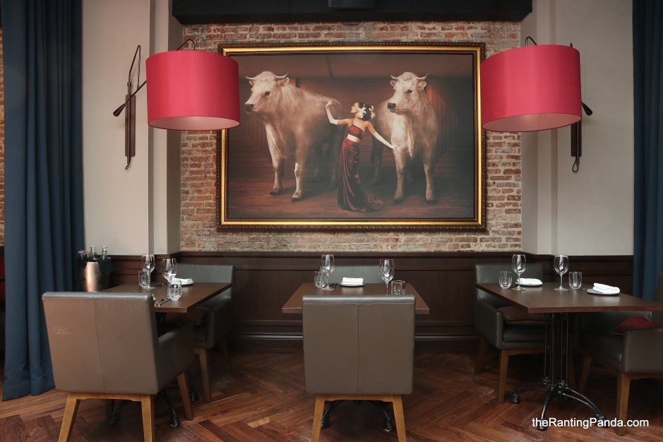 The first half of the restaurant has natural light coming through the rooftop opening, a common architecture feature of shophouses in Singapore, and four standing red lights in each corner completing a sophisticated look. Beyond the sliding glass doors, you enter a more serious dining space complete with over-sized chandeliers. Bistecca’s new look ranks amongst one of the nicest restaurants to open in recent months in Singapore.