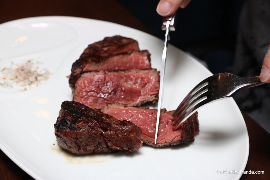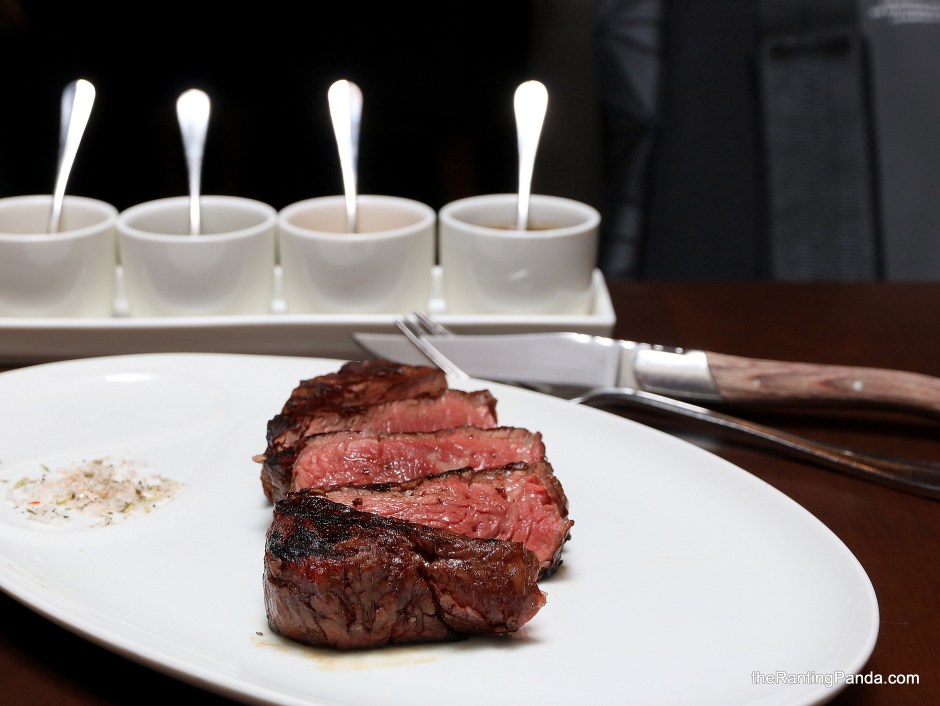 Since we are unable to enjoy the T-Bone, we decided to go for the 420-days Grain Fed MB6 Australian Tenderloin Beef (S$65 for 200g) and the Grass Fed Black Angus 45-days Dry-Aged Scotland Rib-eye Beef (S$68 for 300g). As we all know that grain fed beef tends to have more marbling due to the higher sugar and fat content of grains, which is also how the Pandas like our beef to be.