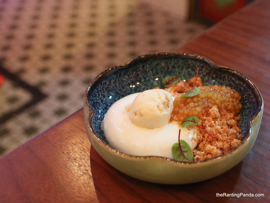 For desserts, the interesting option for me is the Coconut Tau Huay (S$6) with tapioca pearls, a modern rendition of a local dessert which we are all so familiar with. The Tau Huay texture is silky, while the taste is not too sweet for me. The best bits are the ginger nut ice cream and salted butter cookie crumble.
