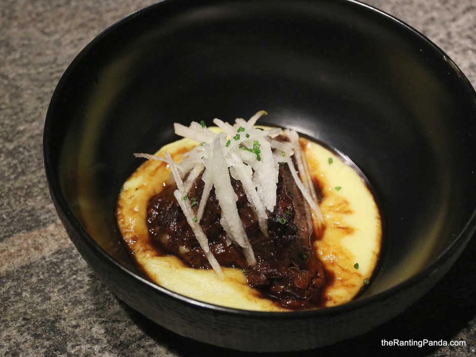 The Food While some of the signature dishes on the menu remains, more than half of the dishes have been refreshed. The dishes are mainly prepared from Japanese and French ingredients, using French cooking techniques and traditional Japanese grilling method over the binchotan, or charcoal.