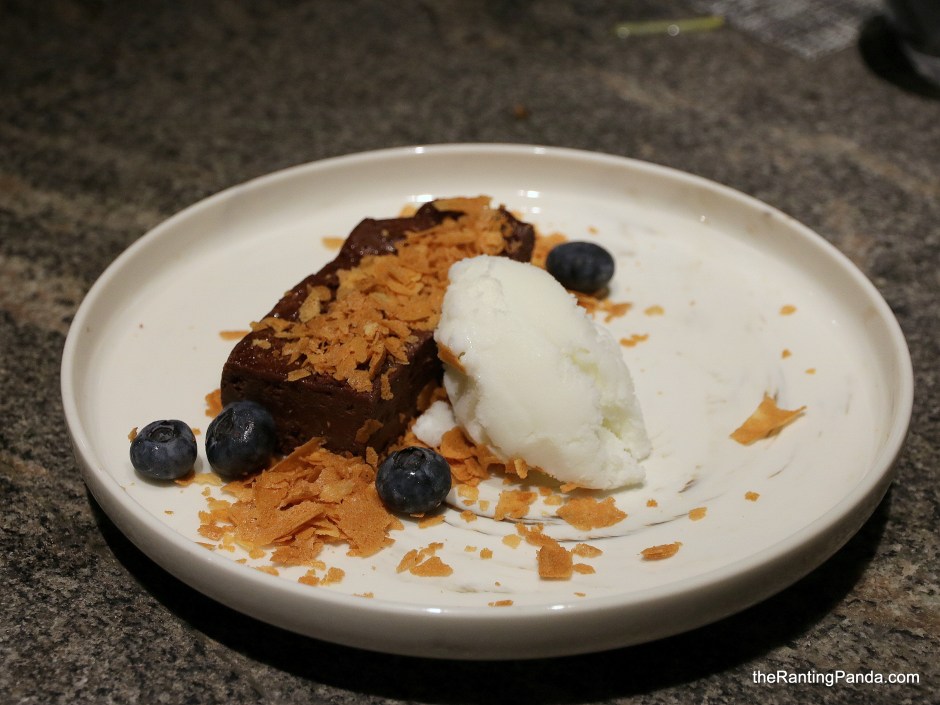 A heavier dessert to have is the Smoked Chocolate (S$15), where the 64% Valrhona dark chocolate is cold-smoked with apple wood, and served with fresh blueberries and yoghurt sherbet. The smokiness of the chocolate is very pronounced, while the intense dark chocolate taste is balanced by the sourness of the yoghurt sherbet.