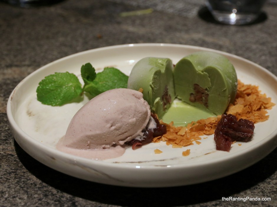 Desserts are not spared from the Japanese-French elements either. Shaped like a green apple, the Matcha Lover (S$17) is specially for Japanese dessert lovers. White chocolate is infused with matcha powder here before being moulded into the shape of an apple, before being frozen with red bean paste in the middle. The flaky bits of crushed feuilletine along with the dessert adds an extra dimension to the dessert.