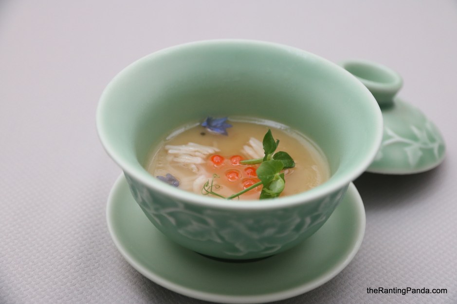 Before our meal started, we were served the Egg Royale (海鲜冷蒸蛋), a cold amuse-bouche of silky Cantonese steamed egg custard. There is a top layer of gelée made from prawn head stock, salmon roe, and crabmeat.