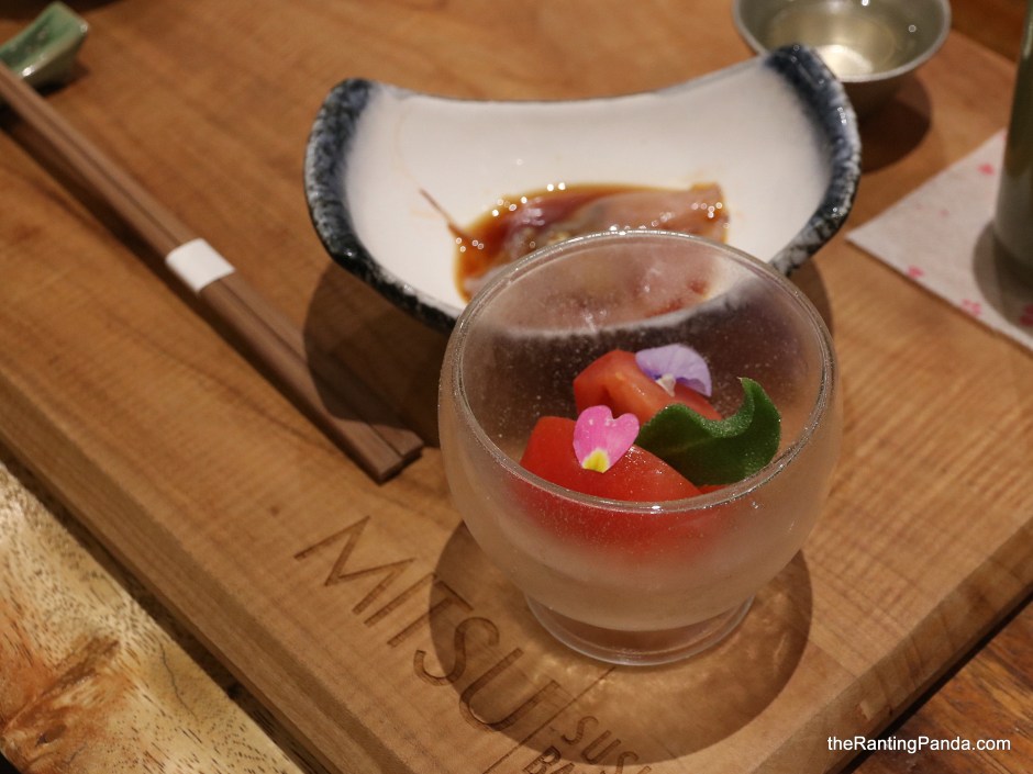 The appetiser to start our meal is the baby squid and fruit tomato, which showcase the freshness of the ingredients here. The squid looks and tastes raw but is surprisingly acceptable for me.