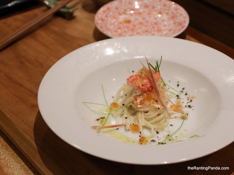 On to the Alaskan King Crab menu, the Kani Tamago Tofu ($20) comes with a crispy baby crab with sea urchin with egg tofu, while the Kani Sumiso (S$20) has crab meat with asparagus and vinegar miso.