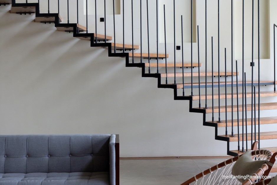A spiral stairway which takes centrestage in the whole classy look of the property, the high glass to ceiling window panes which offer the most alluring view of the sun-kissed beach, the choice of locally hand-made wooden furniture and its impeccable arrangement which makes this feel like the perfect minimalist holiday, or rather the first step to declutter my mind of any work.
