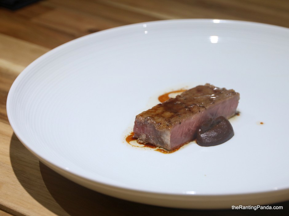 For mains, I had the Japanese Aomori Beef, a grain fed beef marinated with fermented rice. Its not the most highly marbled beef so the flavour is not that intense for me. The beef was also slightly overdone – which the chef conceded to the diners that this is due to the constraint of the kitchen. There is a small dose of chocolatey sauce by the side, which didn’t go well for me.