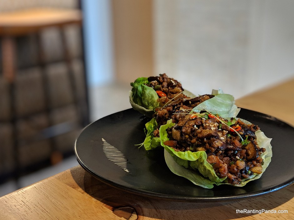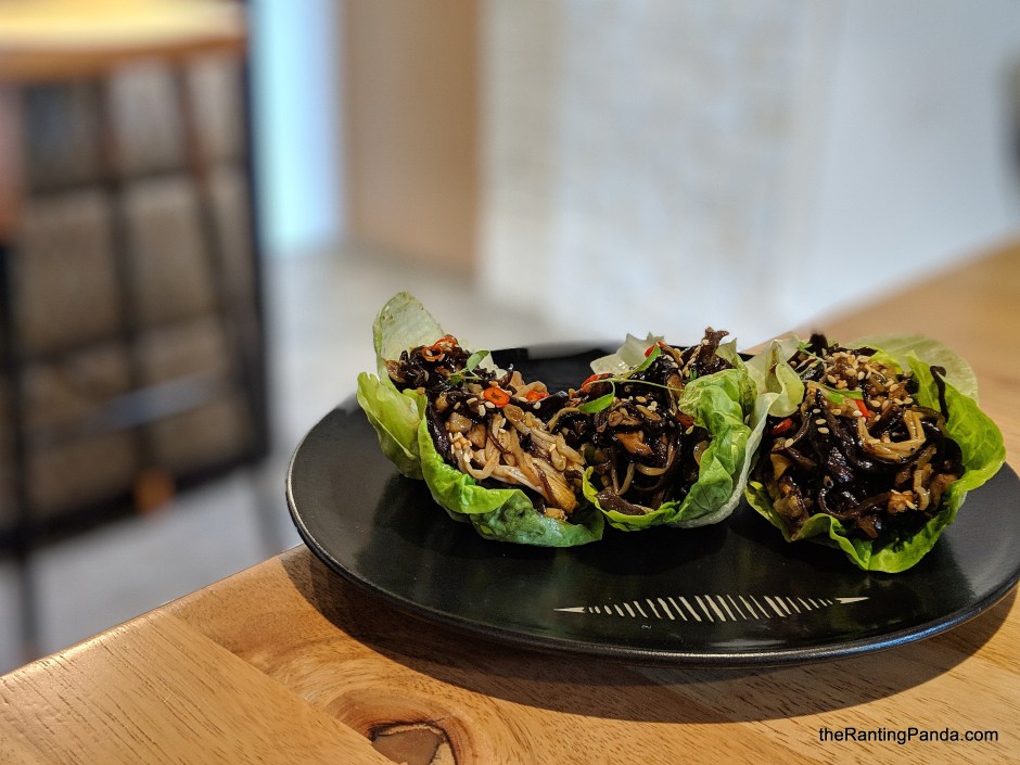Some bites to start are the Pork & Chicken Choi Bao with Water Chestnut & Lup Cheong ($4) and Mushroom San Choi Bao (S$4), black fungus, enoki and shiitake mushroom. Both finger size bites are wrapped with cabbage, with the latter being a vegetarian option. The pork and chicken flavour has a much heavier taste than the mushroom for sure, though I find that both versions lean towards the oily side.