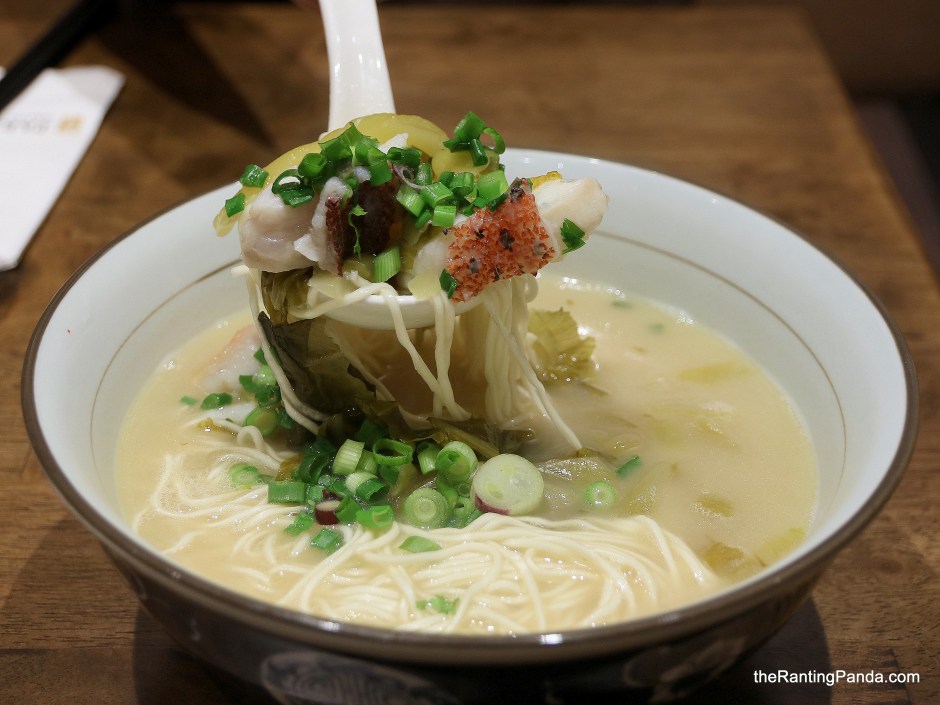 The other noodle I tried was the Red Garoupa with Pickled Vegetable Tonkotsu Ramen (S$18.90). Unlike the Japanese tonkotsu broth I am familiar with, the first distinct difference is the slight spiciness in the broth here from the pickled vegetables. The spicy ramen broth is quite welcoming initially, and I enjoy the fresh taste and firm texture of the thick slices of red garoupa. That said, the broth does get a little salty towards the end which I suspect comes from the pickled vegetables.