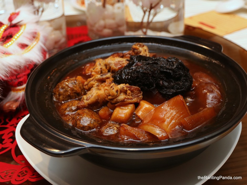 Panda’s Pick: Go for their flagship outlet, Crystal Jade Palace, for its Pan-seared Lobster with XO Sauce topped on Yuzu Noodle. Our love for Yuzu is known, but it is perhaps our first to savour the lightly Yuzu-flavoured noodles done with savouries. The outcome is a very light, yet delightful, ending to the usually heavy reunion meal. If you are looking for Pen Cai this year to take home for your gathering at home, Crystal Jade will be retailing their Bountiful Abalone Treasure Pot (S$268.80 for small, S$468.80 for large) at all their outlets. The Pen Cai here consist of 18 ingredients, including highlights such as whole 10-head Abalone, Sea Cucumber, Fish Maw, Scallop, Prawn, Dried Oyster and Pig Trotter!