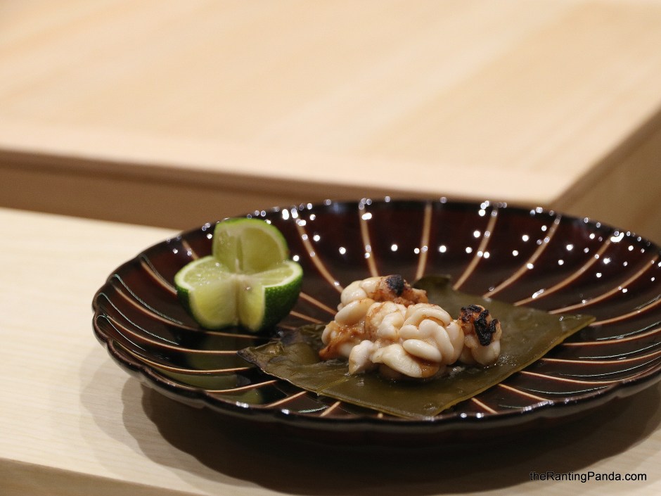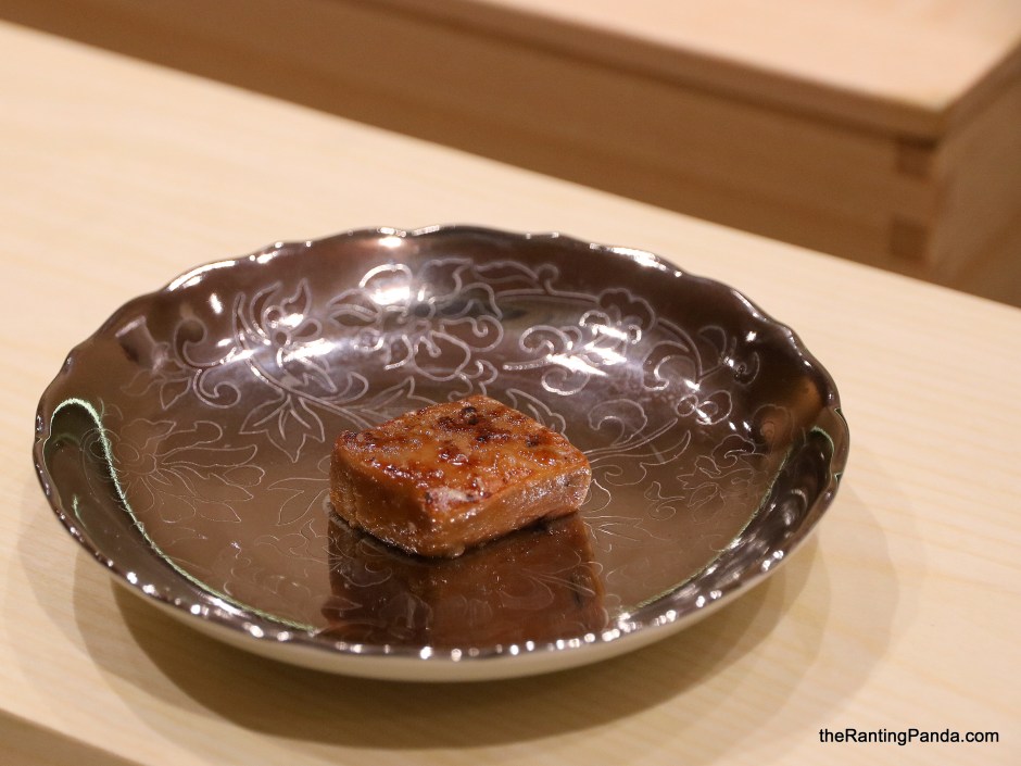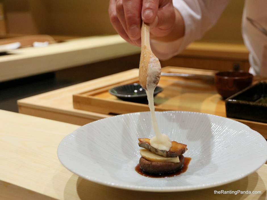 Our next course is a seasonal ingredient, the exotic Shirako, always known as cod fish milt. Chef Sato grilled it over binchotan, which gives it a slightly charred texture. The resulting flavour is really creamy with slight hints of char, and this is one delicacy which I am growing to appreciate more along these years.