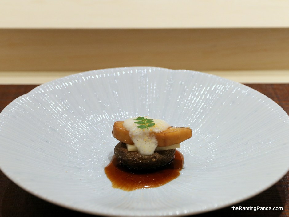 Moving on, the next dish is quite light. It is largely a mushroom dish, which is a combination of shiitake mushroom along with bamboo shoots, topped with mackerel and Japanese yam. There is quite a heavy use of yam as I had noticed thus far.