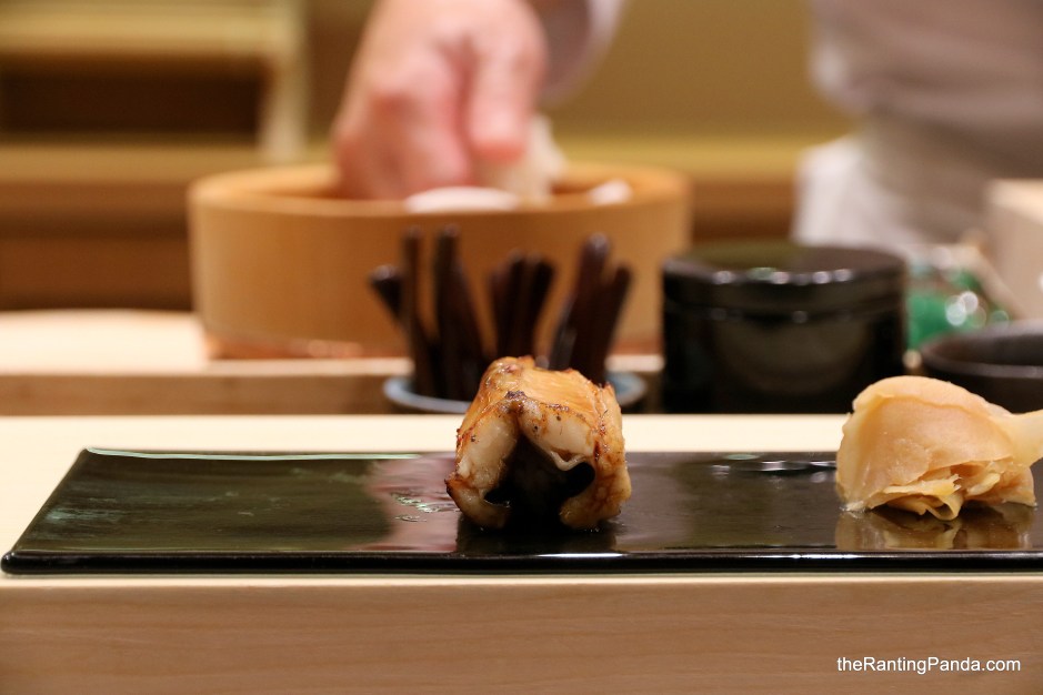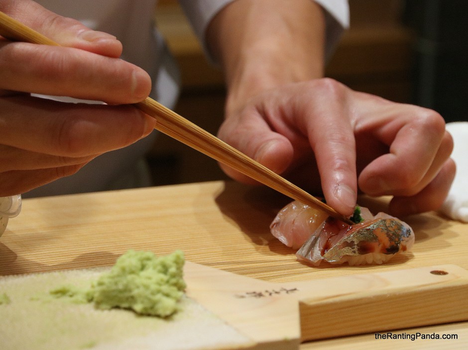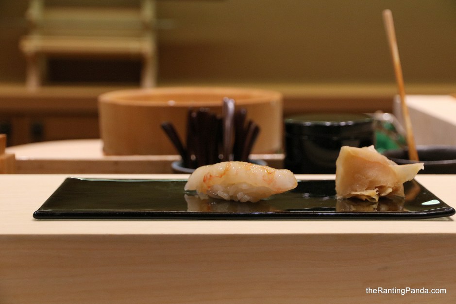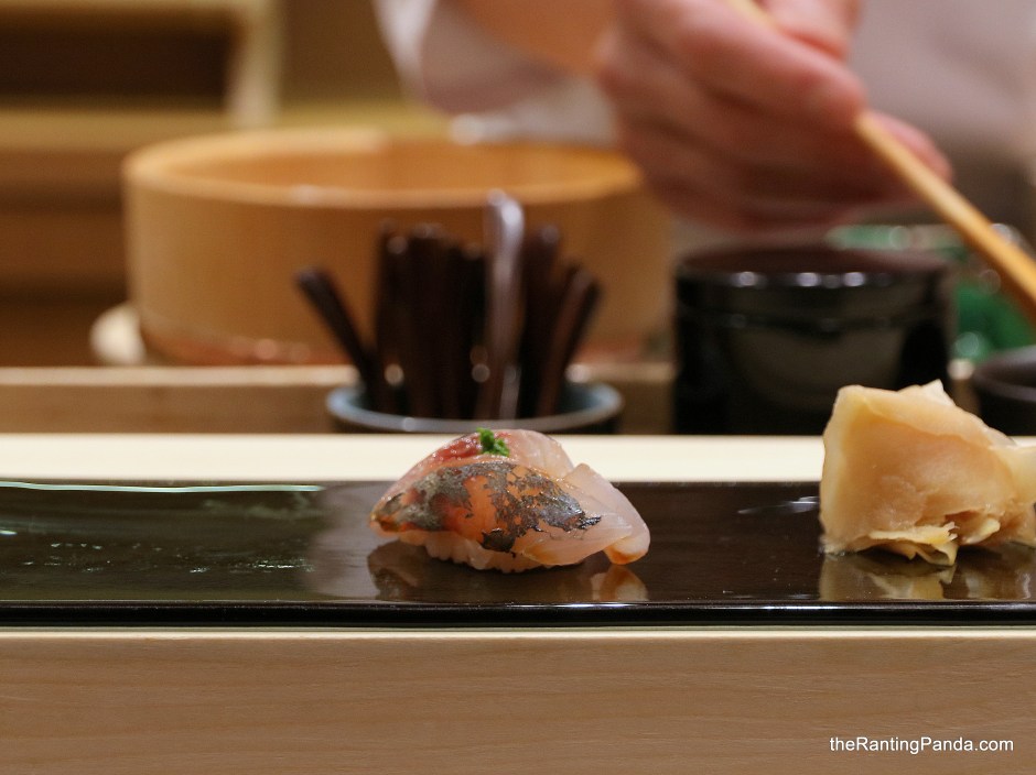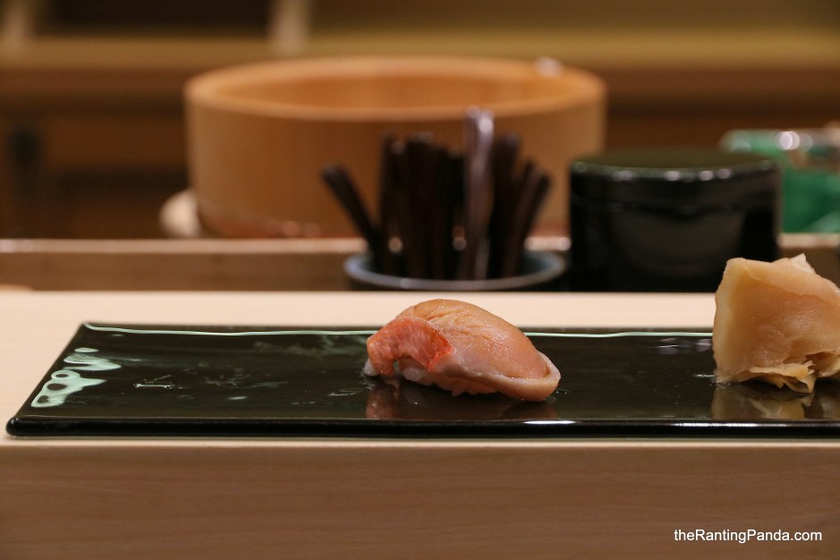 Before Chef Sato proceeded to make our sushi, we had a palate cleanser, a unique ginger infused sorbet-like dish. It is prepared by mixing garlic with hot water, before adding ginger juice, Japanese sour plum and apple to the concoction.