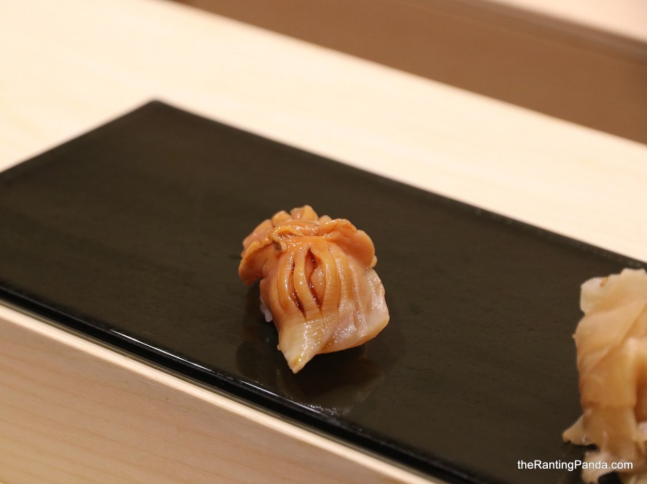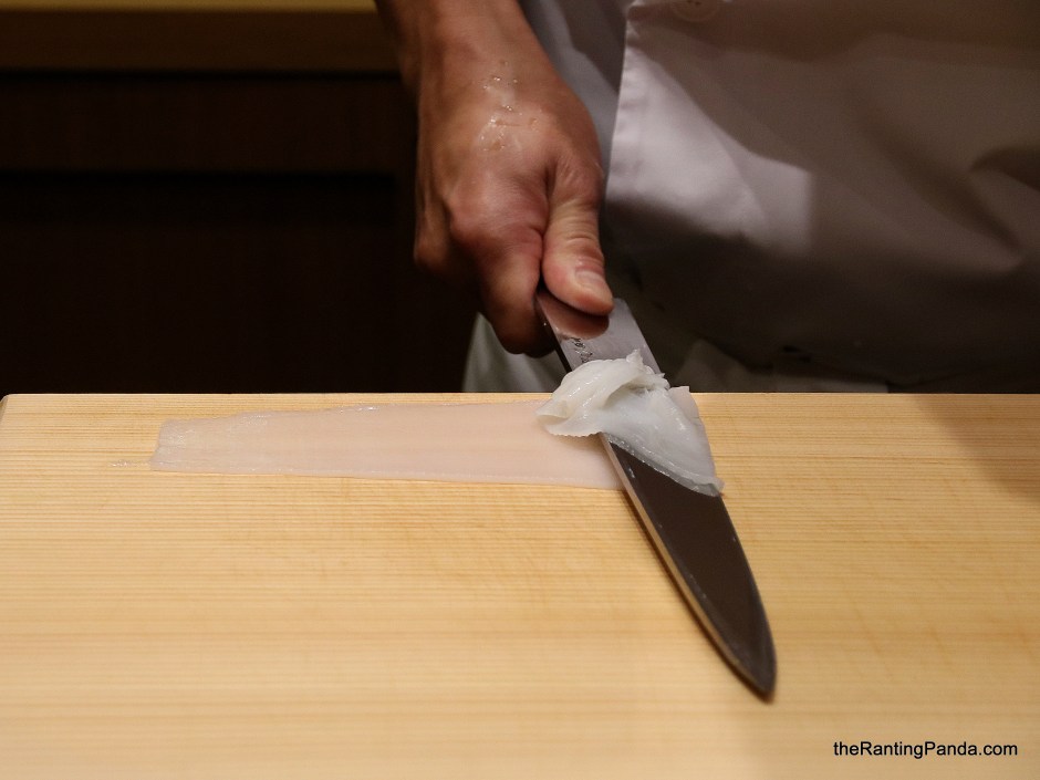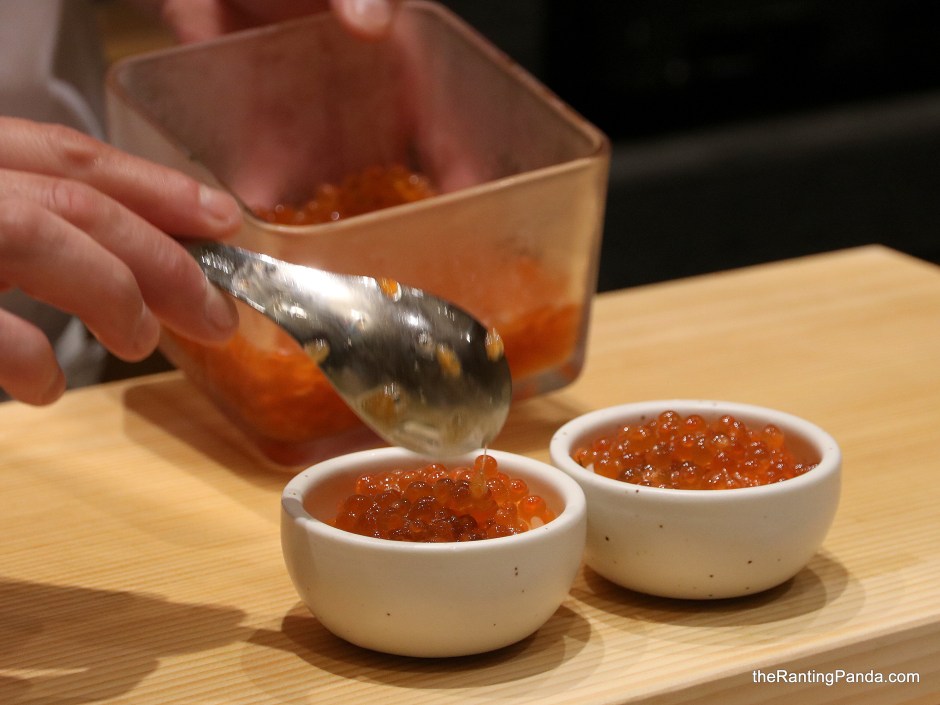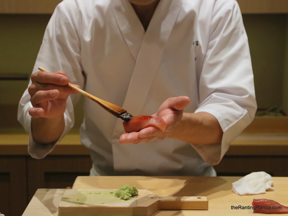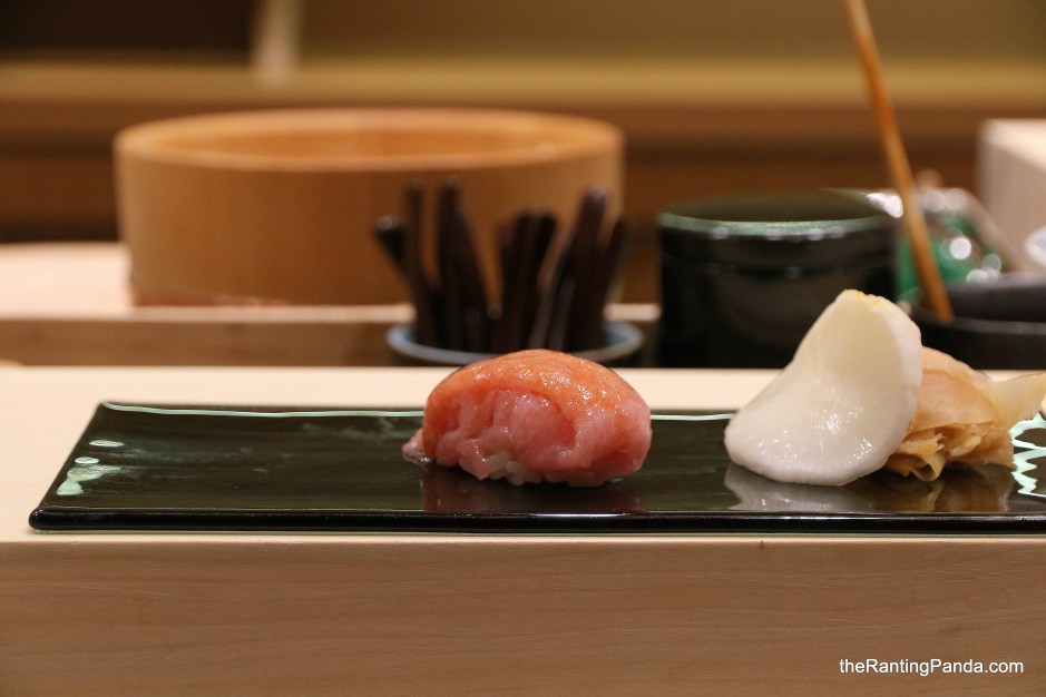Before Chef Sato proceeded to make our sushi, we had a palate cleanser, a unique ginger infused sorbet-like dish. It is prepared by mixing garlic with hot water, before adding ginger juice, Japanese sour plum and apple to the concoction.