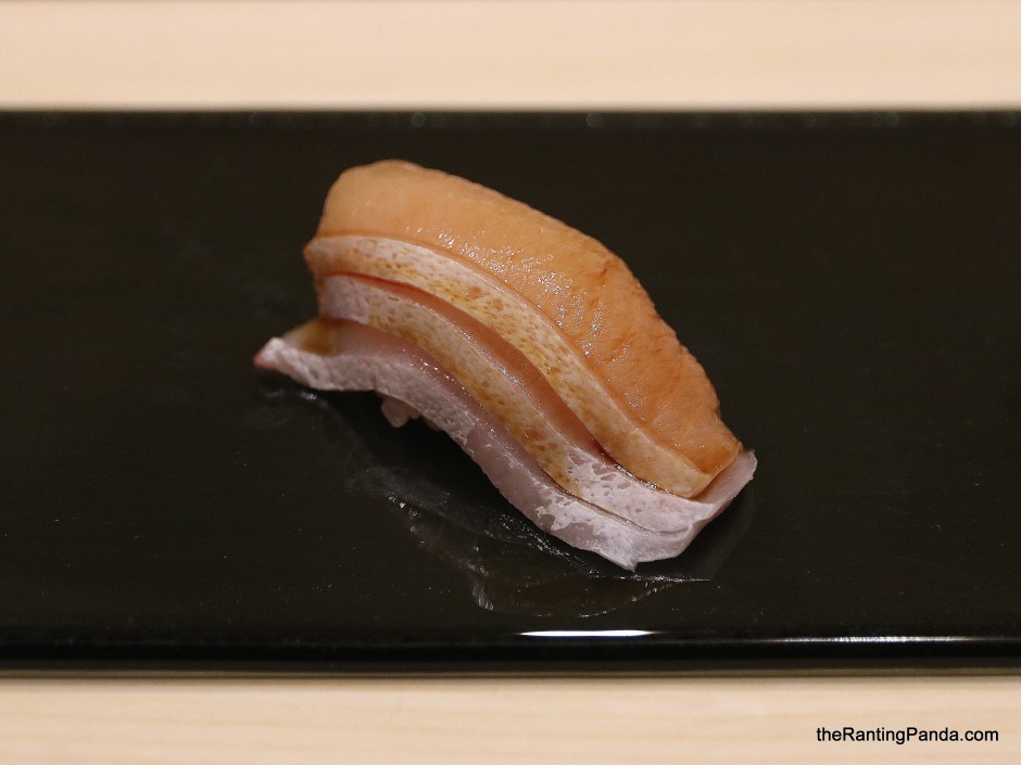 The first sushi I had is the Sea Bream. While sea bream itself has a relatively light flavour, I paid more attention to the flavour of the rice. The rice texture is soft and tasty, and I found out from Chef Sato that it is a mix of different types of rice prepared with vinegar – although he will not be giving away any more information on their secret recipe for their sushi rice.