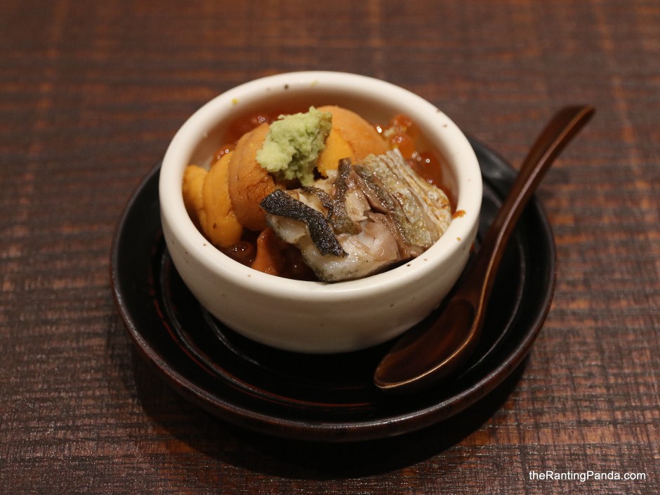 One of the last savoury dishes, the next course is a mini donburi consisting of Ikura and Sea Urchin. This two ingredients gives the rice a luscious texture and flavour, and I wouldn’t mind doing with more of the uni for sure.