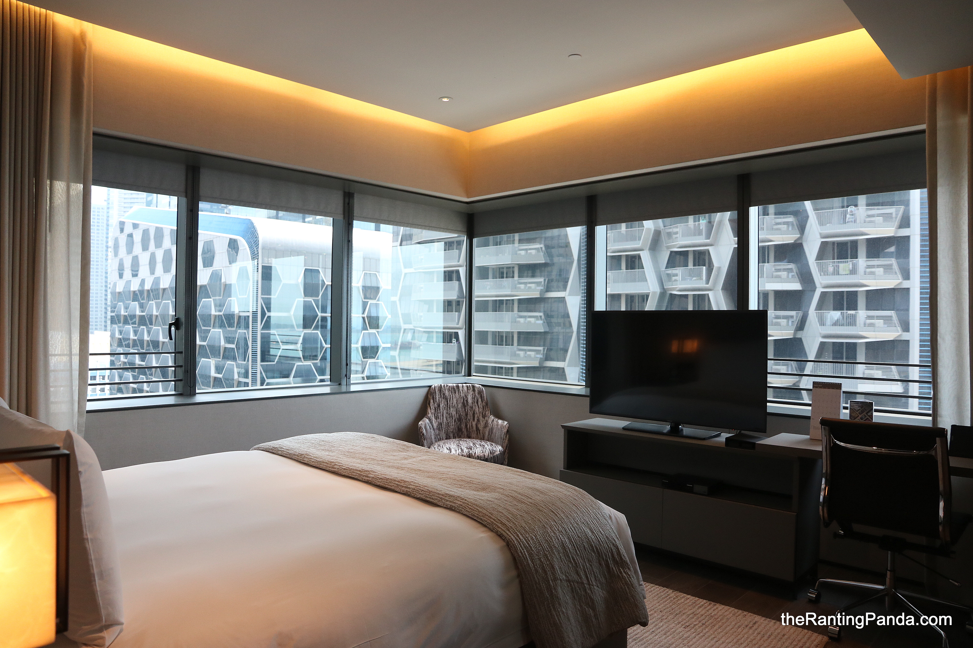 The design of the bedroom is a pleasant surprise for me. Spotting a contemporary interior with neutral colour tones, I like the ample natural light in the room from the full glass window panes, which offers a view of the Central Business District. The bed is firm enough for me, as well as the pillows where I had a good night sleep. There is also a Samsung mobile phone and tablet in the room which guests could use to surf the internet.