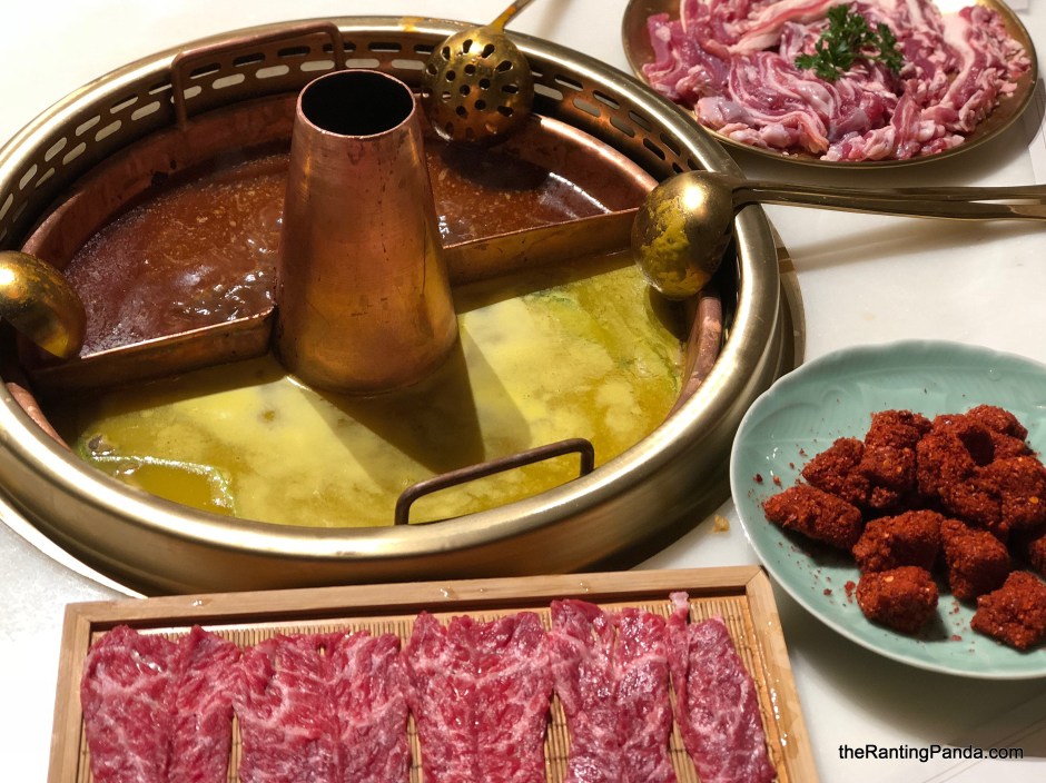 My preferred broth is actually the Golden Chicken Pot (S$68), as you know the Pandas are not exactly big fans of mala. The Chicken broth may be pricey, given that the golden broth is prepared with hours of slow cooking with chicken, black fugus, yam, konjac, pineapple chunks, sliced cucumber, brown shimeiji mushrooms and pumpkin.