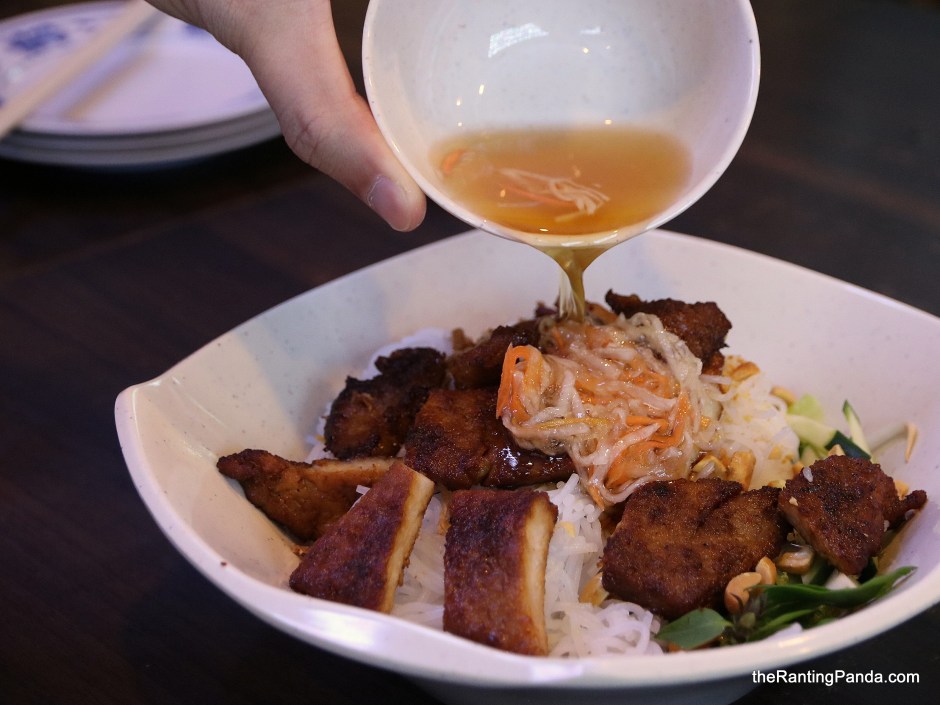 The Rantee tried the Bun Thit Nuong Cha Gio (S$9.9), a dry noodle dish with grilled pork and rice noodle. It is quite interesting as I have never tried this dish before. Mix the ingredients together, and the taste of the dish is close to a salad as it is strangely quite refreshing.
