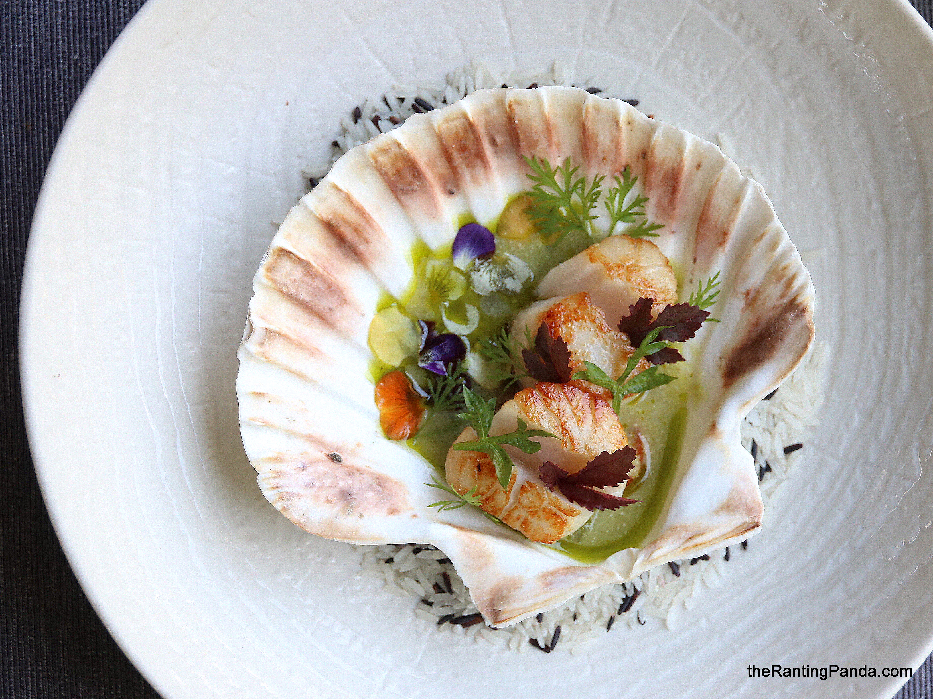 The Rantee and I both went for the 4-course lunch menu. For a cold start, the Diver Scallop (S$5 supplement) is deliciously beautiful. Served in a shell, the fresh scallop is decorated with garden herbs and served with jalapeño & cashew nut milk dressing. The flavour is tangy yet it whets the appetite.
