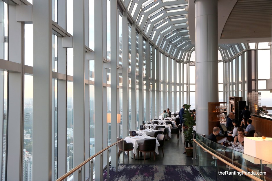 The newest restaurant on this list, Vue sits at the top of OUE Bayfront, right at the edge of Raffles Place. From here, you get unblocked views of the entire Marina Bay vicinity despite the relatively short building in comparison with the others on the list. Focusing on binchotan grills, Vue only opens for dinner now. (Review Coming Soon…)