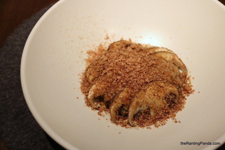 The next course centres around mushroom. The porcini mushroom is accompanied by cured pork liver which is shaved over the mushroom, somewhat like a truffle shaving moment but much more unique.