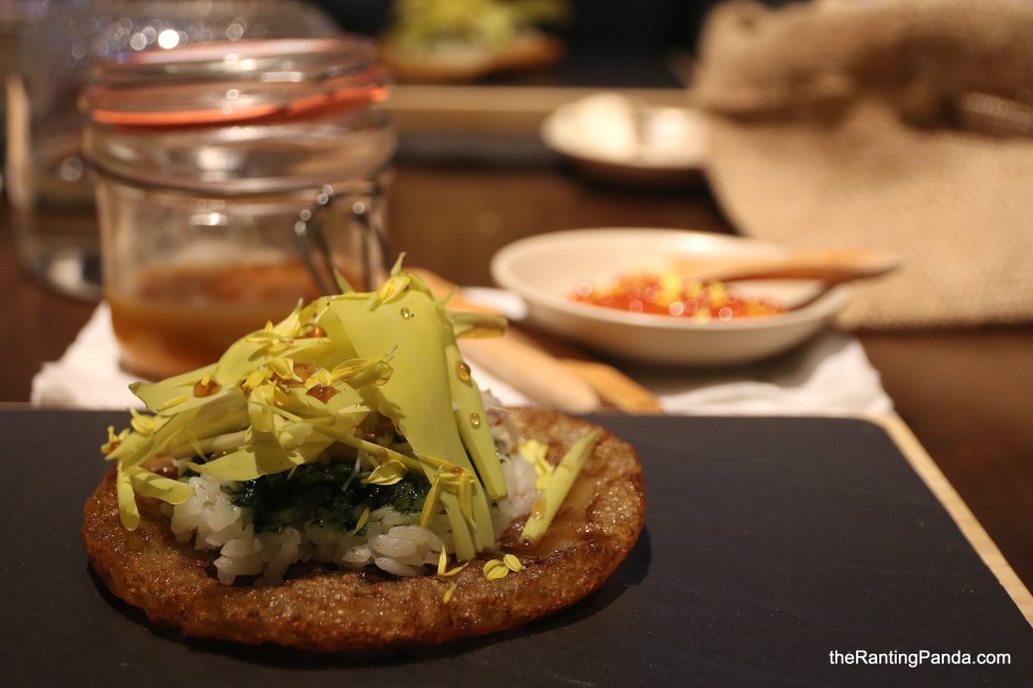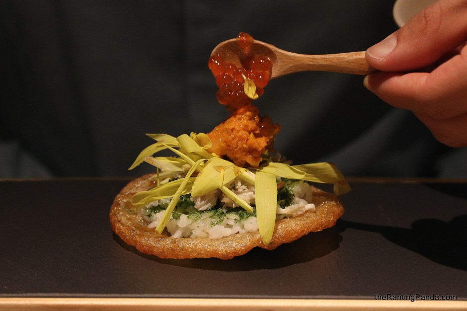 What’s the best way to enjoy crab roe? According to RAW, I had the next dish on a crackling sushi style where the copious crab roe is scooped from a bottle and topped with ikura.