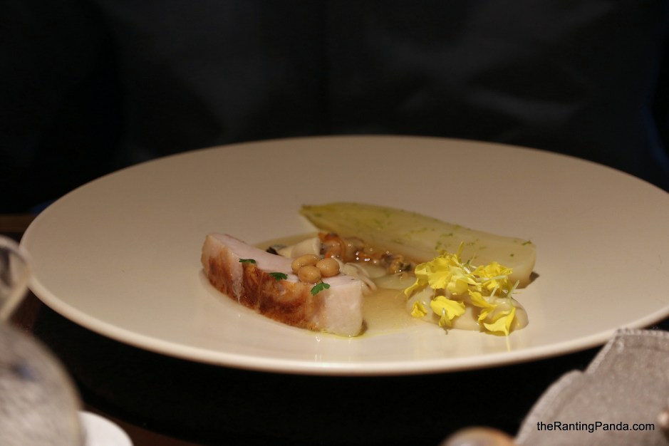 The next dish is a sturgeon fish served with white tapenade and endive. This is one of my least favourite course as there is not much element of surprise here.