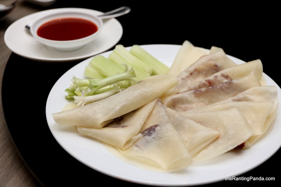 Quite a traditional presentation where the glistening duck skin is sliced, and you just enjoy it with a simple wrap with some vegetables and the most important condiment, the Peking Duck sauce.