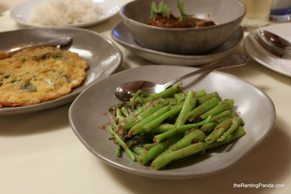 To balance our meal, we also had the Pad Boong Pad Kapi (160 Baht), wok-fried morning glory with ‘kapi’ shrimp paste.