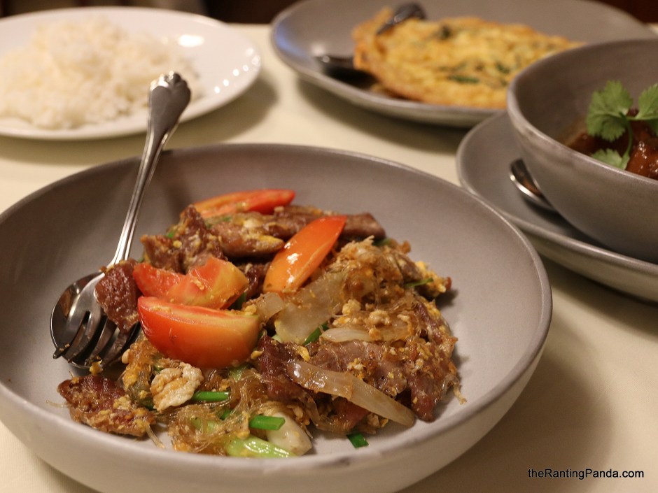 The Food The very extensive menu means the ideal group size is at least 3 to 4 persons to try a good variety. Otherwise, come with a very empty stomach for couples. We started with the Pad Woosen Moo (160 Baht), essentially glass noodes stir fried with pork. The flavourful glass noodles here is complemented well by the tender pork meat.