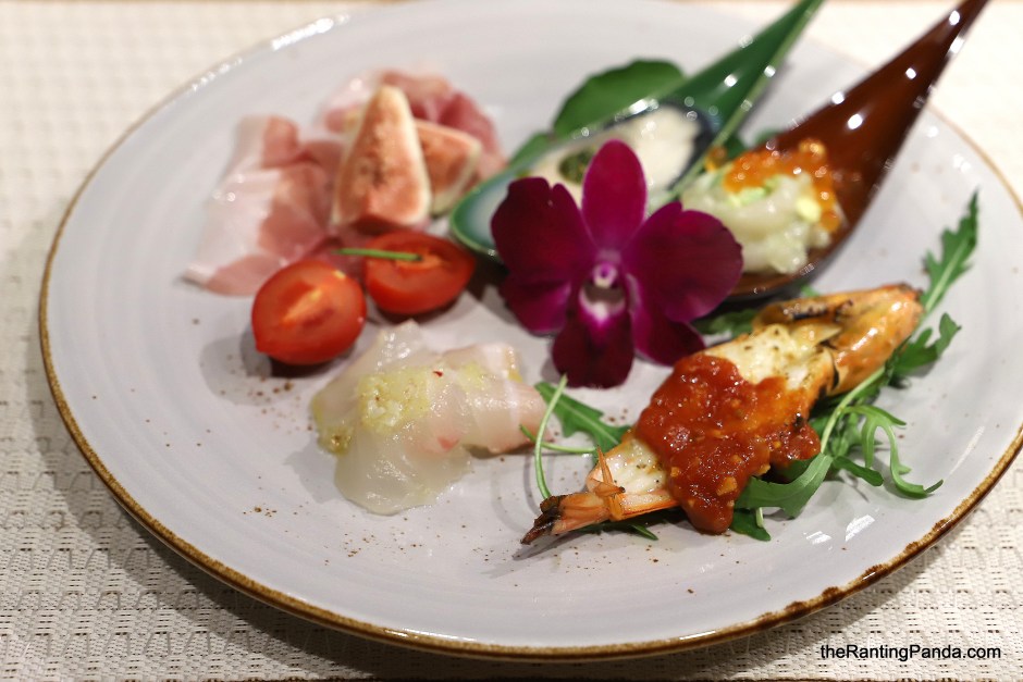 Following that, a plate of antipasto was served including Japanese appetizers such as Arabiatta Prawns, Japanese Tai Fish and Sakoshi Bay Oyster, to Italian-inspired options including the Scallop Avocado Tartare, and Prosciutto Ham with Fig. The standout for me is the Japanese Tai Fish for its freshness and the Scallop Avocado Tartare. Overall, it is a competent plate to whet your appetite.